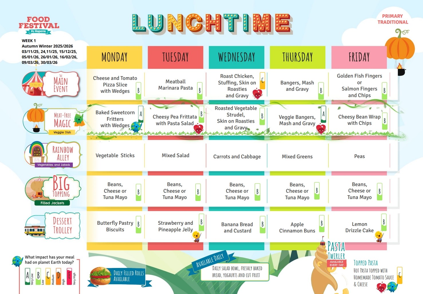 You can bring a packed lunch for free or we can provide a hot dinner at a cost of £2.40. Please see the office for more information.