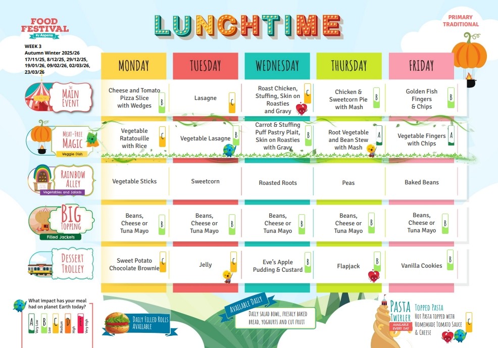The children are served a range of healthy meals which are nutritionally balanced and in line with current guidance. These are supplied by Aspens and cooked to order from Emneth Academy. For those children who have dietary requirements Aspens require confirmation of this from your GP and dietician and can then make changes to any of the meals to meet the needs of your child. Menus change seasonally and children also have the option of a packed lunch which is also prepared in the kitchen at Emneth Academy.