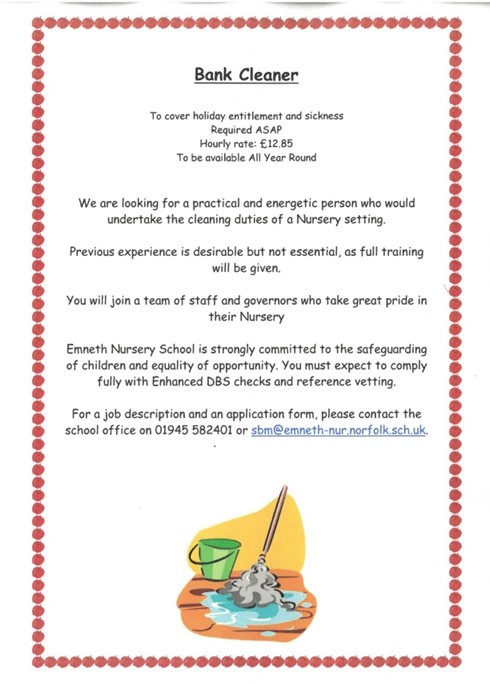 We have a vacancy for a bank cleaner